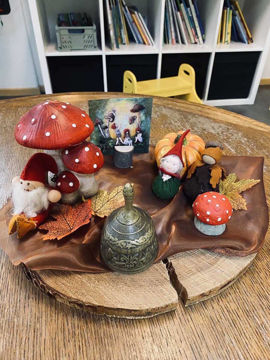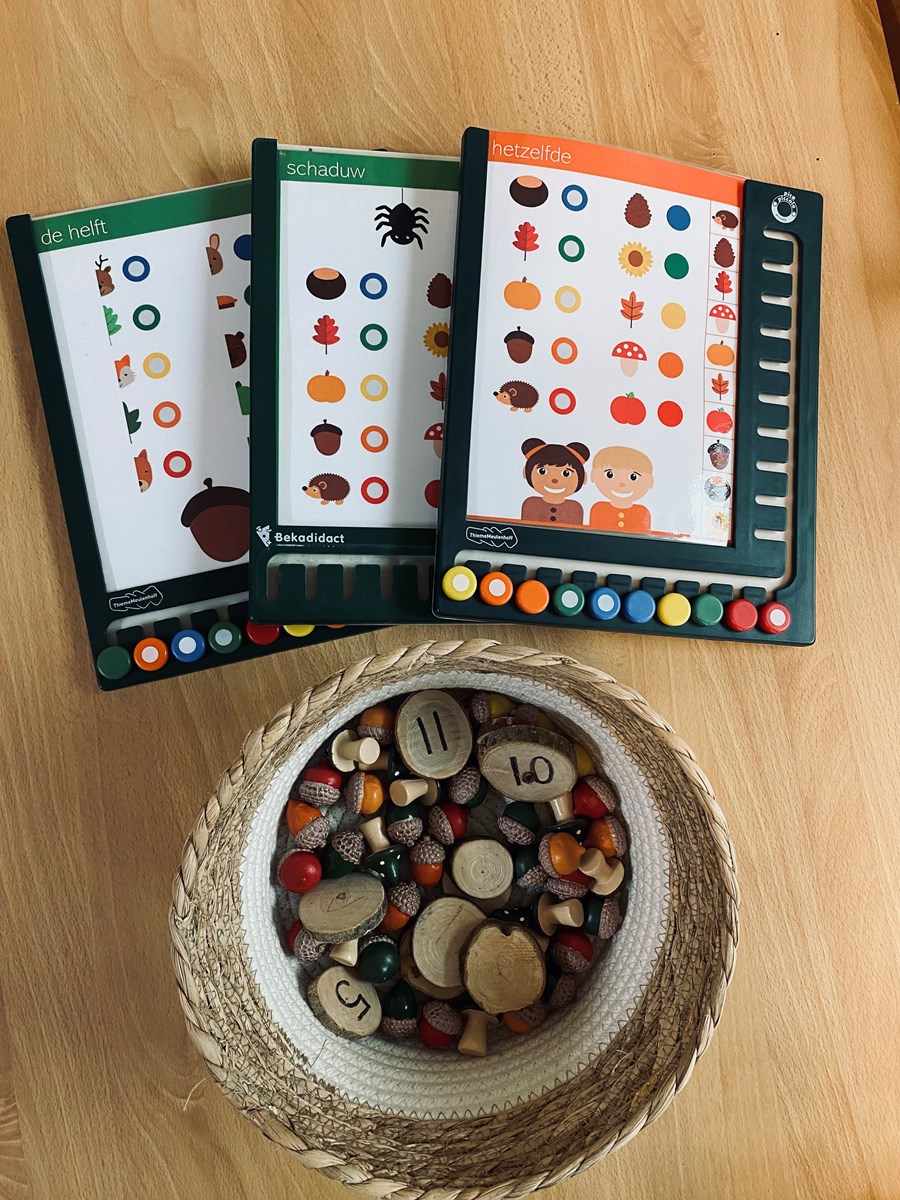Samen hebben de kinderen de seizoenstafel omgetoverd en kunnen de kinderen verschillende werkjes maken over de herfst. 🍁🍄🍂