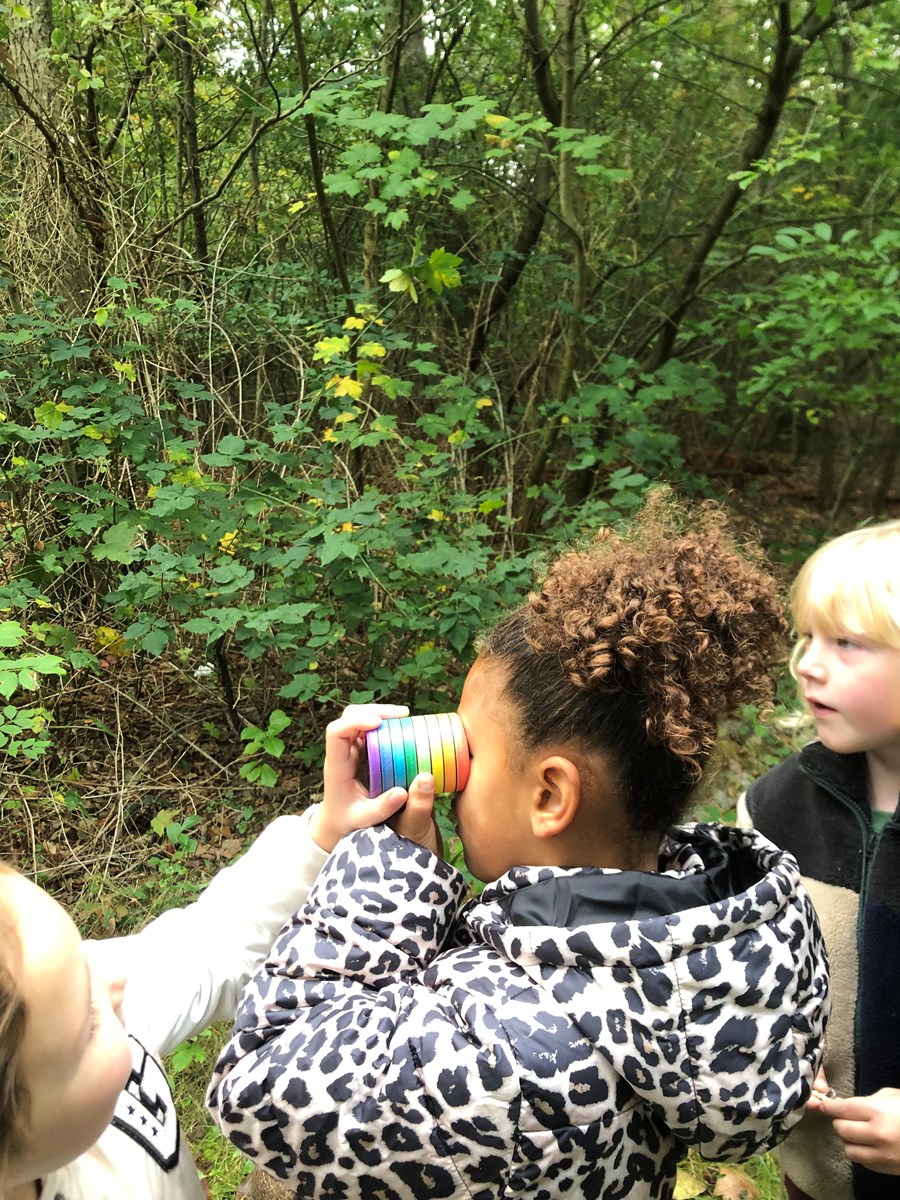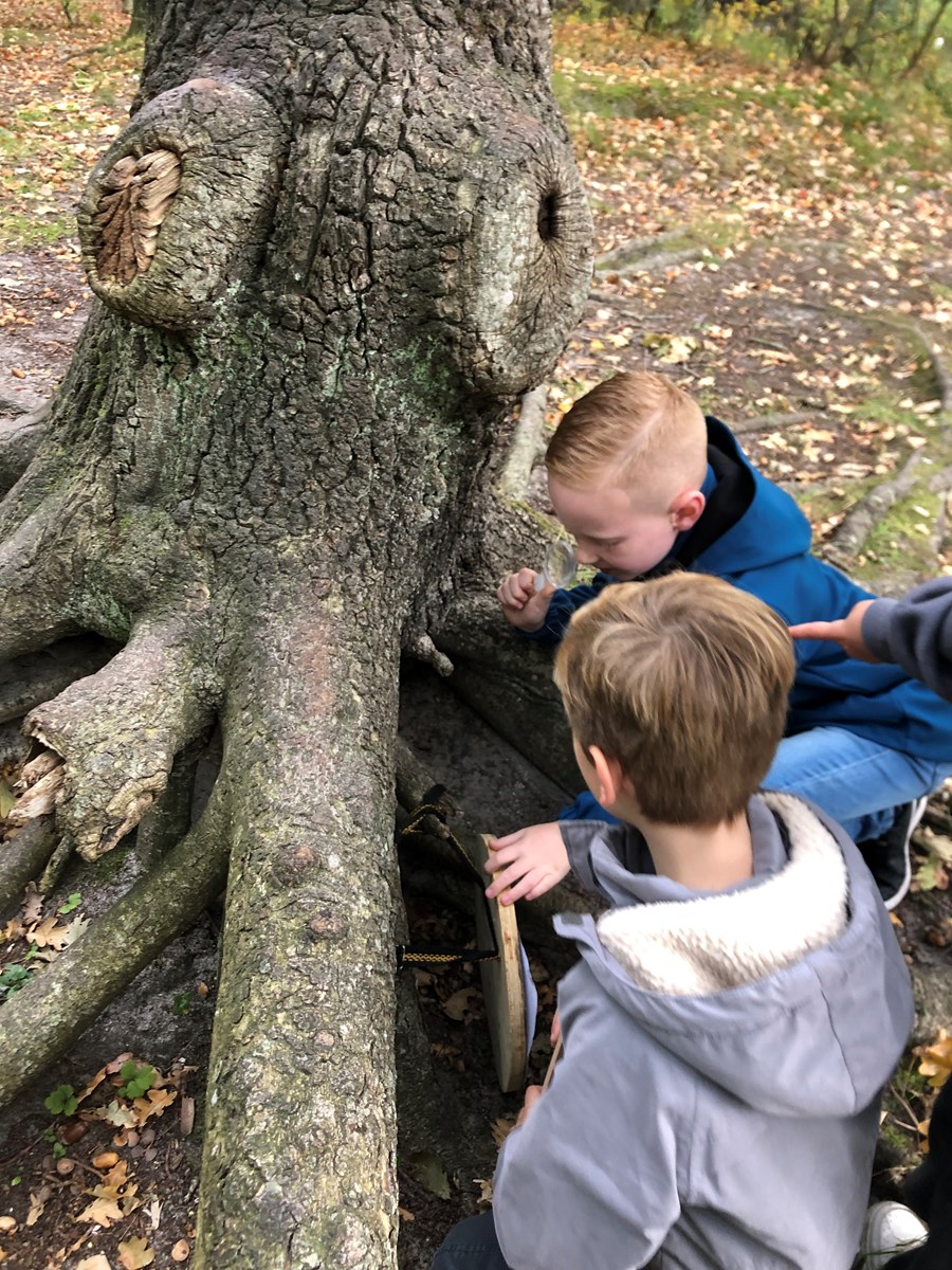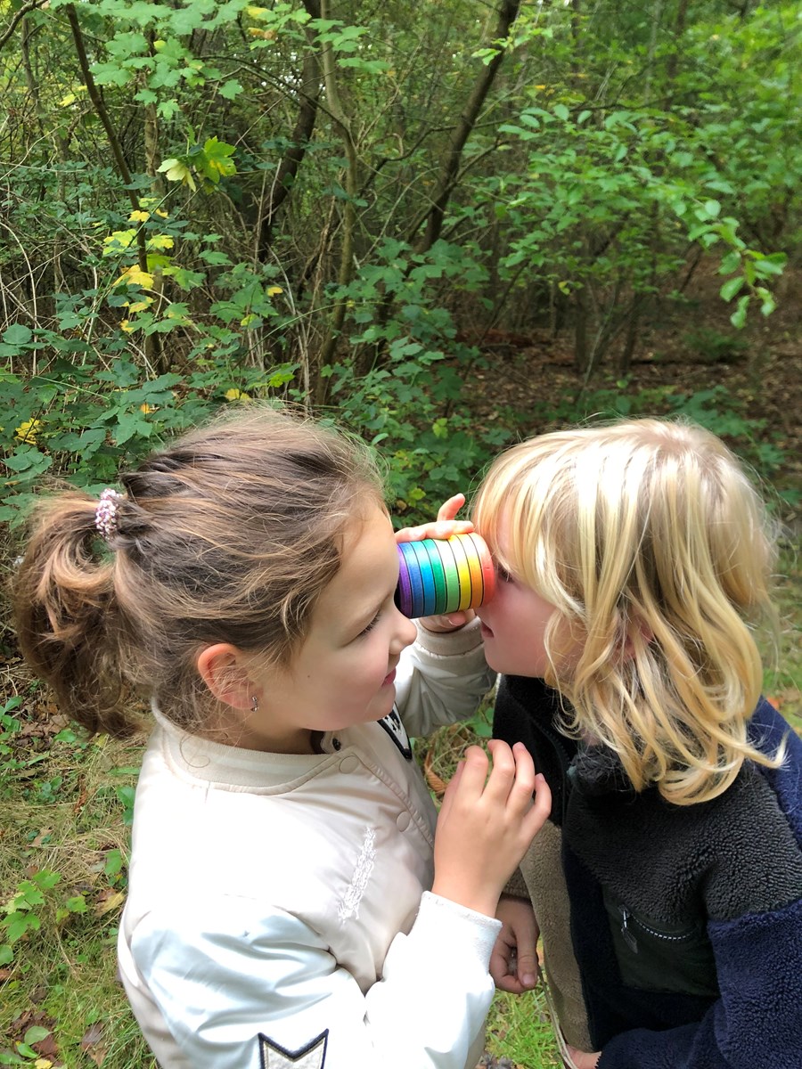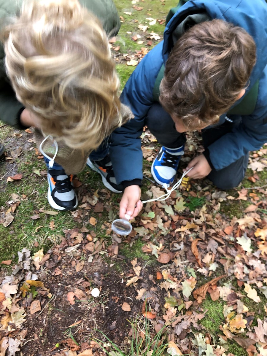 Ze maakten zelf wolven geluiden en andere dierengeluiden na, roken de geuren van de natuur en voelden de texturen van de bomen en planten. Alle zintuigen werden aangezet! Met zoekkaarten en vergrootglazen onderzochten ze het bos en ontdekten sporen van dieren, boomsoorten en bodemdieren.