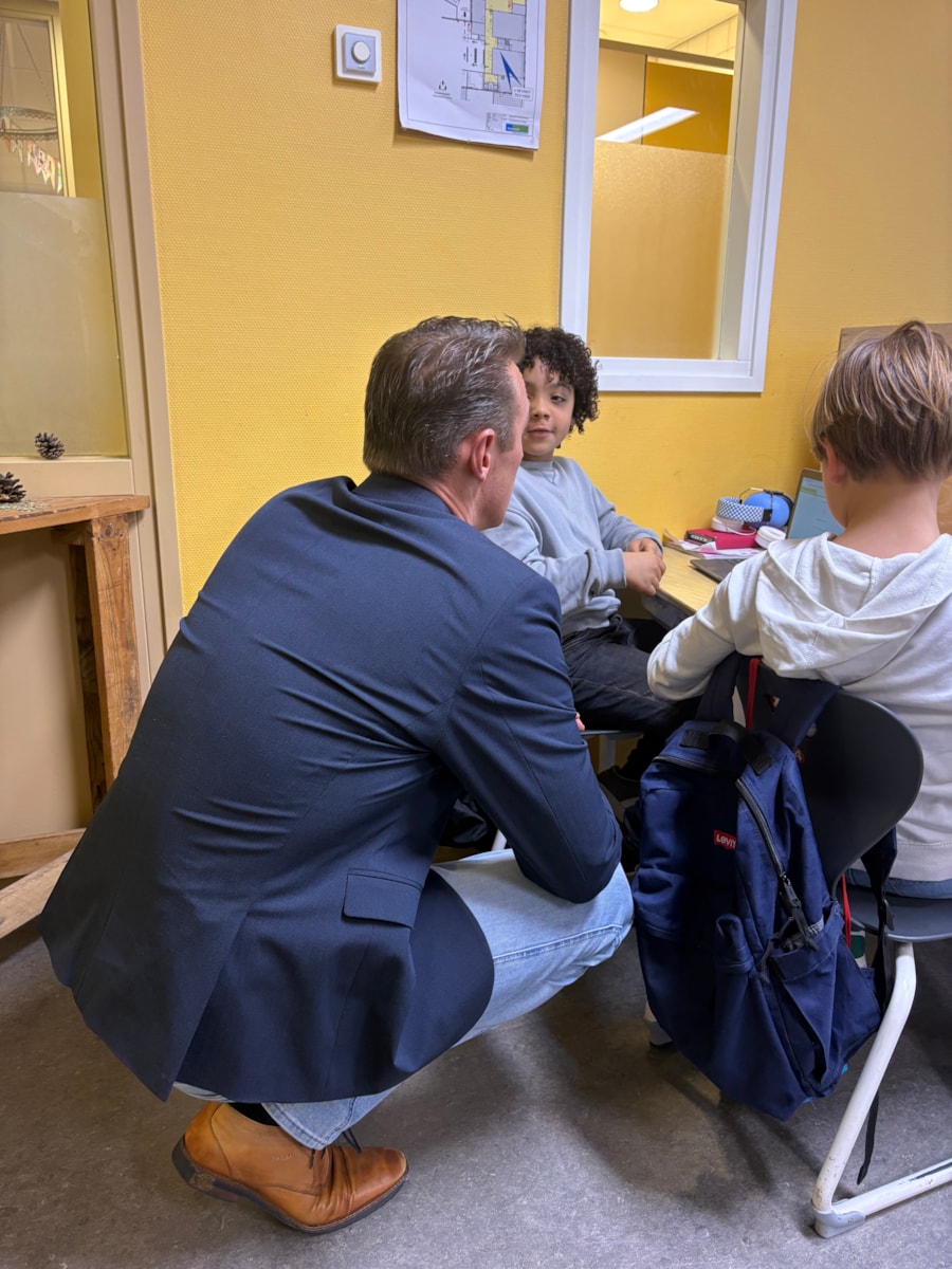 Vandaag hadden we een mooie ontmoeting op school. Meester Peter, onze bestuurder, kwam langs en nam uitgebreid de tijd om de groepen in te gaan. Hij raakte in gesprek met onze kinderen en was zichtbaar benieuwd naar waar zij mee bezig zijn.